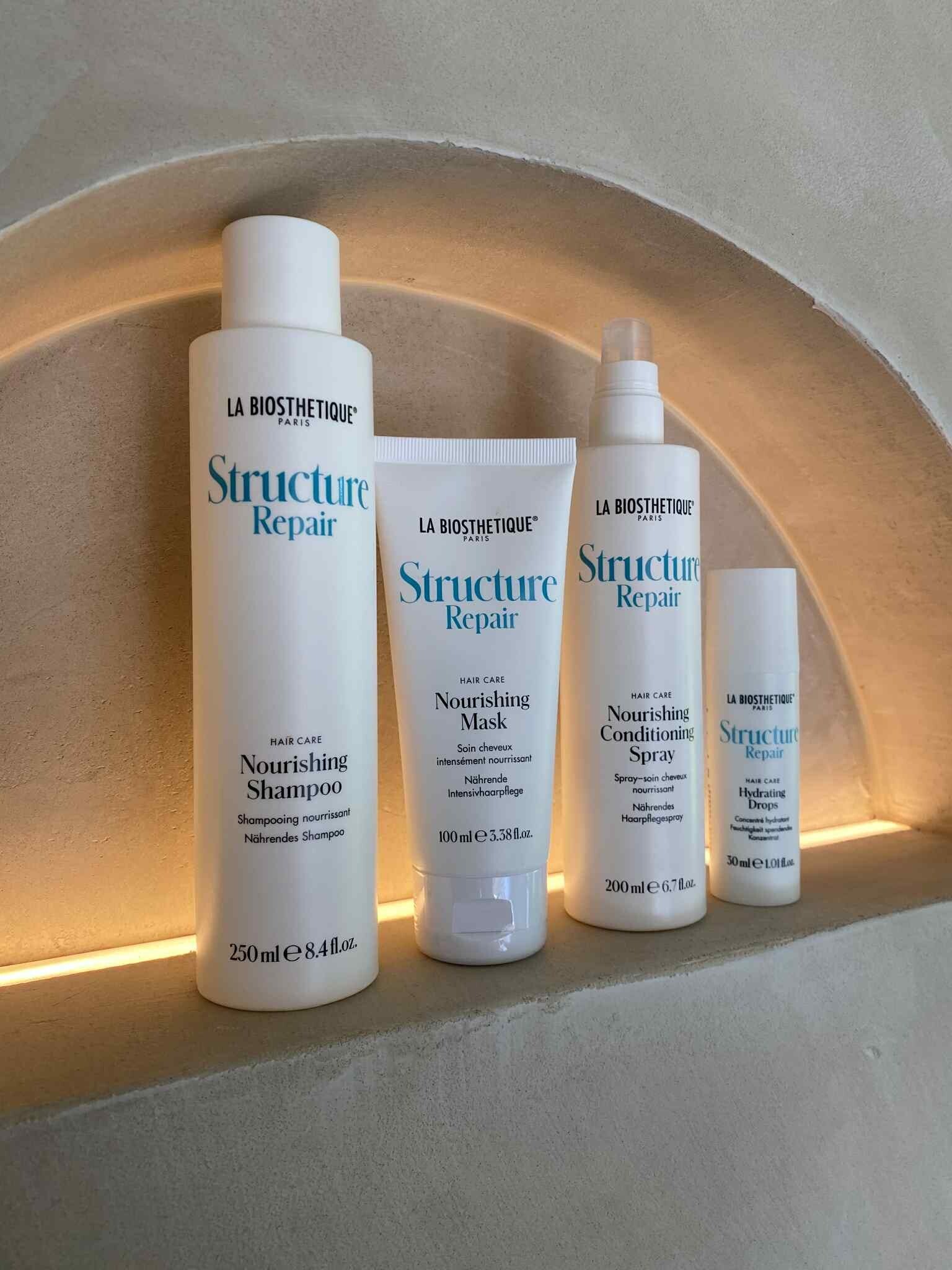 Dagelijkse styling, kleuringen of invloeden van buitenaf kunnen het haar beschadigen en broos maken. De Structure Repair-lijn van La Biosthétique is speciaal ontwikkeld om verzwakt, poreus en beschadigd haar van binnenuit te herstellen.